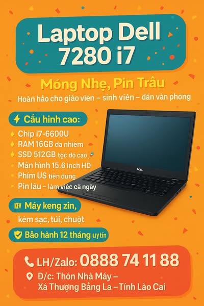 Laptop Dell 7280 i7 – Mỏng Nhẹ, Pin Trâu